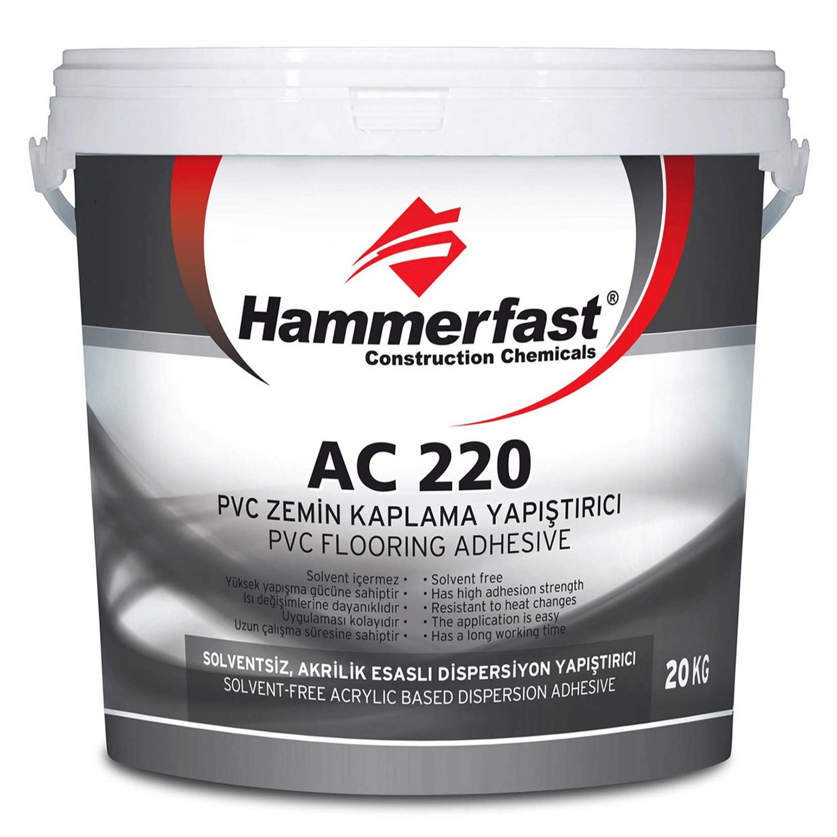 Hammerfast AC 220, Biz Teknik Yapı Zemin Sistemleri olarak sunduğumuz özel bir üründür. Solventsiz, akrilik esaslı bir dispersiyon yapıştırıcı olarak tasarlanmıştır ve iç mekânlarda PVC ve linoleum gibi zemin kaplamalarının yapıştırılmasında kullanılır. Bu özel yapıştırıcı, müşterilerimize sunduğumuz yüksek kaliteli zemin çözümlerine güçlü bir katkı sağlar.